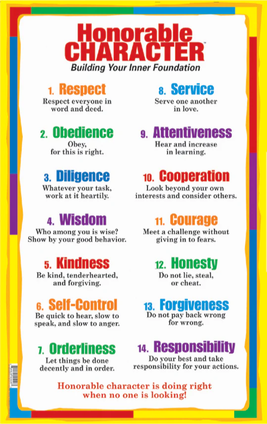 Teaches the importance of character qualities like responsibility, respect, diligence, and self-control*